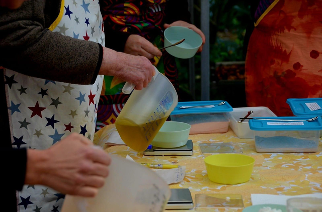 Tijdens deze ochtend leer je hoe je met natuurlijke ingrediënten een effectief afwasblok maakt volgens de cold process methode. Je giet het afwasblok in een keramieken schaaltje en maakt daarnaast een extra reserve blokje. Ook krijg je een houten afwasborstel mee, zodat je het afwasblok direct thuis kunt gebruiken.